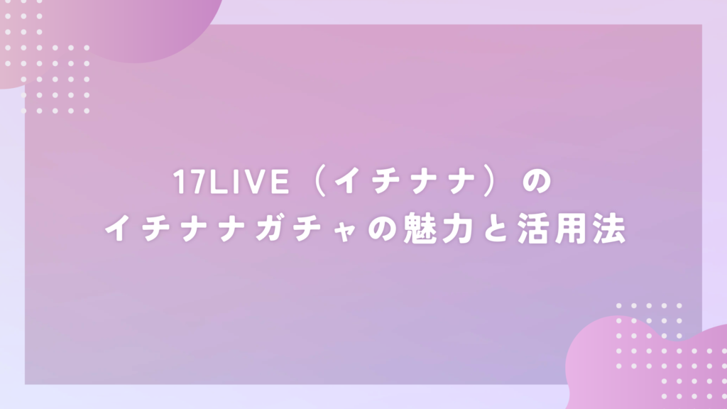 皆さんは17LIVE(イチナナ)で、「イチナナガチャ」を使ったことはあるでしょうか?