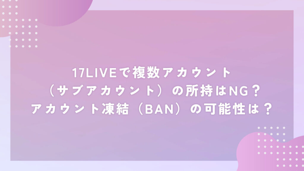 17LIVE(イチナナ)では、複数アカウント(サブアカウント)の所持や運用は原則禁止されています。