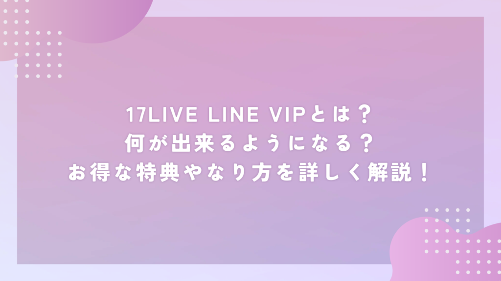 今回は、17LIVE LINE VIP制度について解説しました。