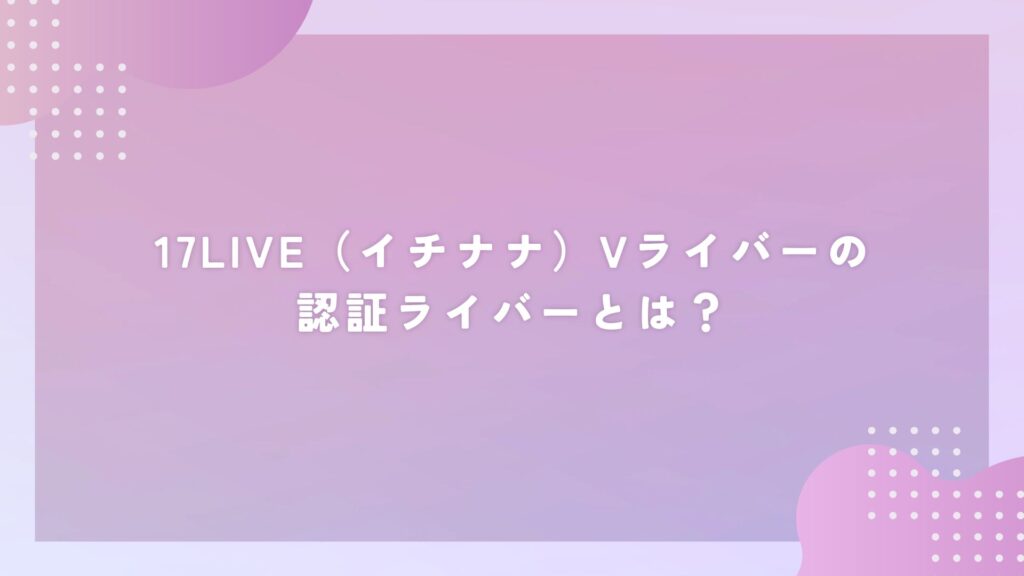 1. 17LIVE(イチナナ)Vライバーの認証ライバーとは