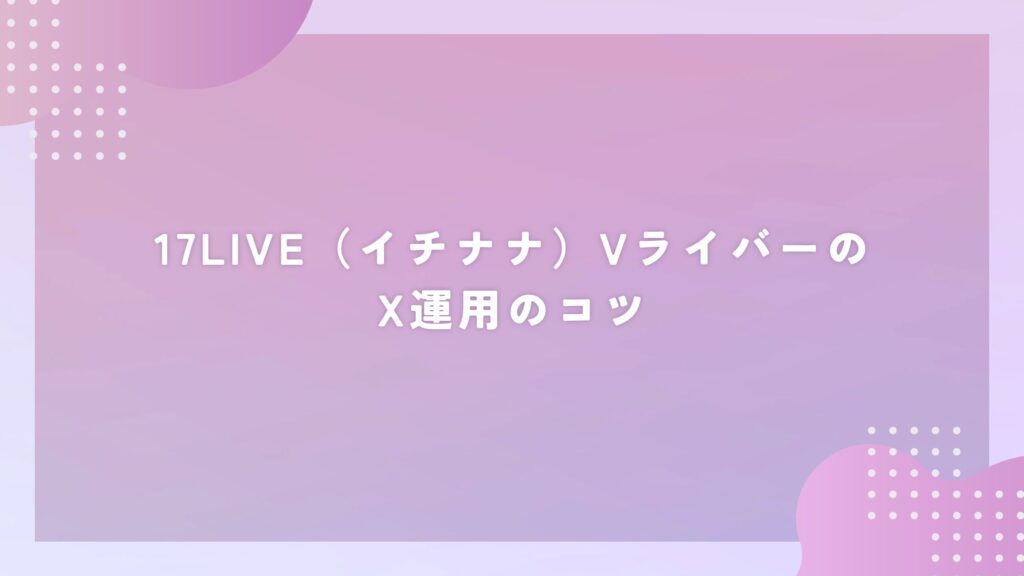 17LIVE(イチナナ)VライバーとX運用の役割